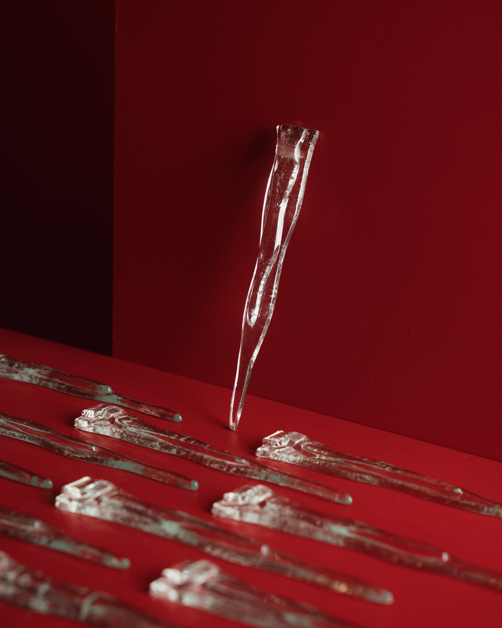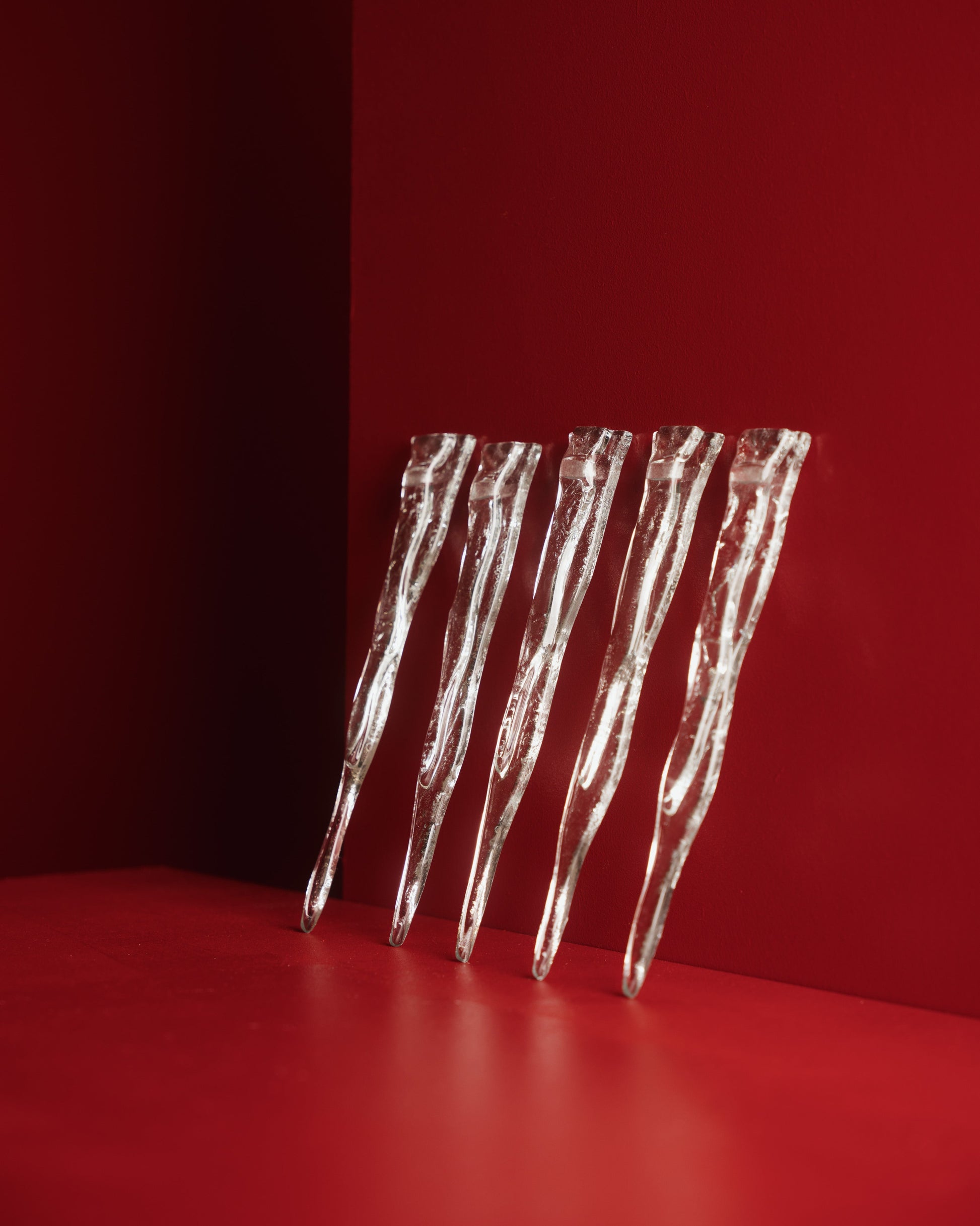 Set se sastoji od pet staklenih siga. Nježne i elegantne hvataju svjetlo i donose
